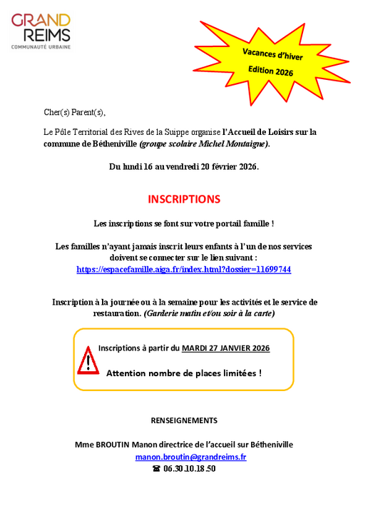 📞 Directrice des Accueils de Loisirs sans Hébergement : Manon Broutin au 06 30 10 18 50