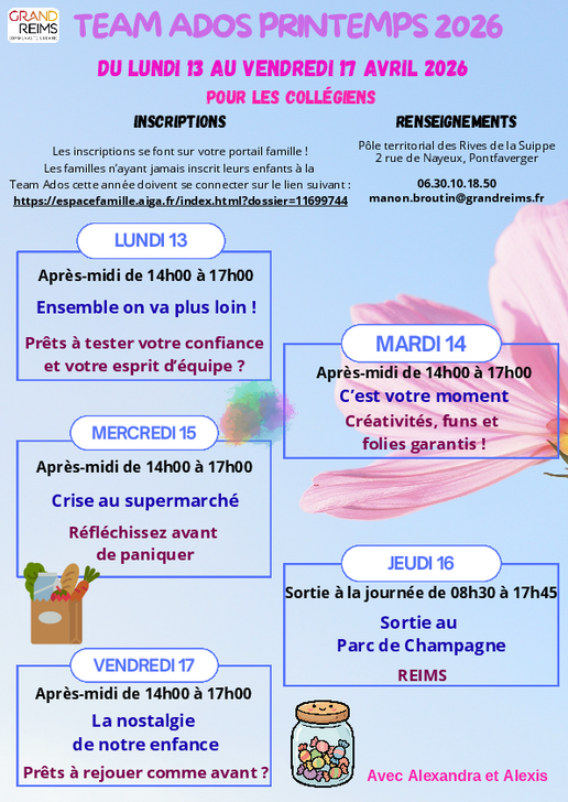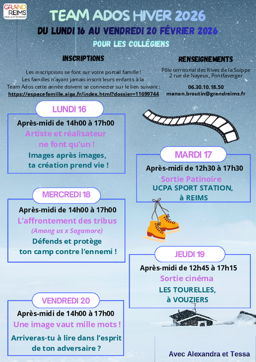 Les vacances approchent, n'hésitez pas à inscrire vos enfants et vos jeunes ados à "La Team Ados".