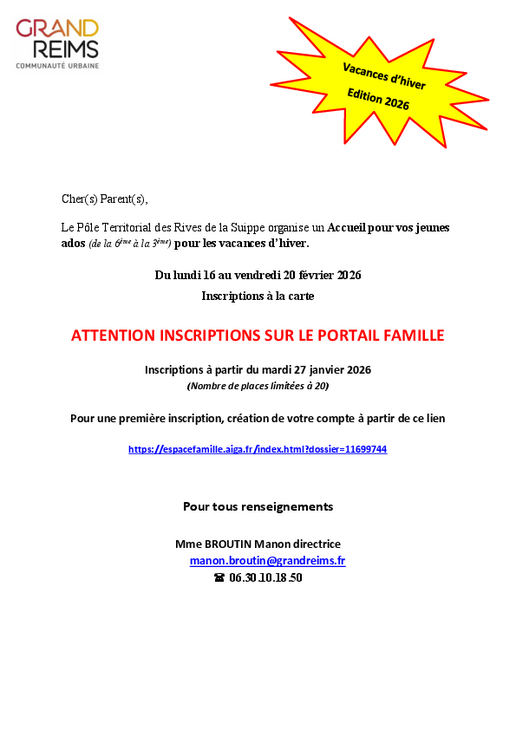 📞 LIGNE DIRECTE SERVICE JEUNESSE : 03 26 24 54 76