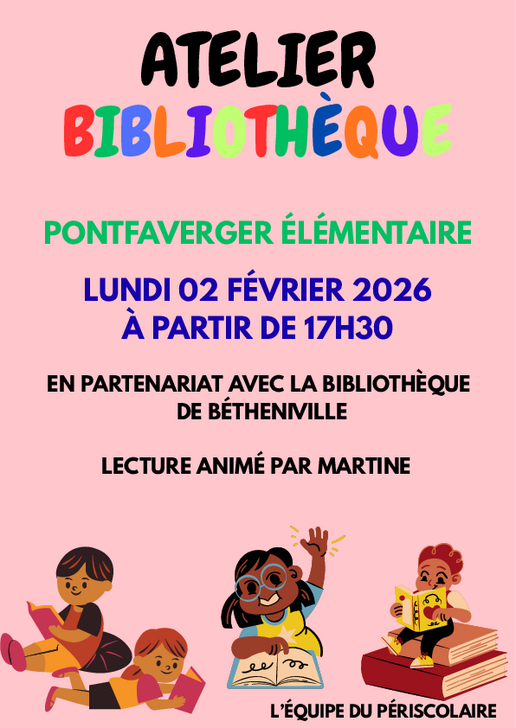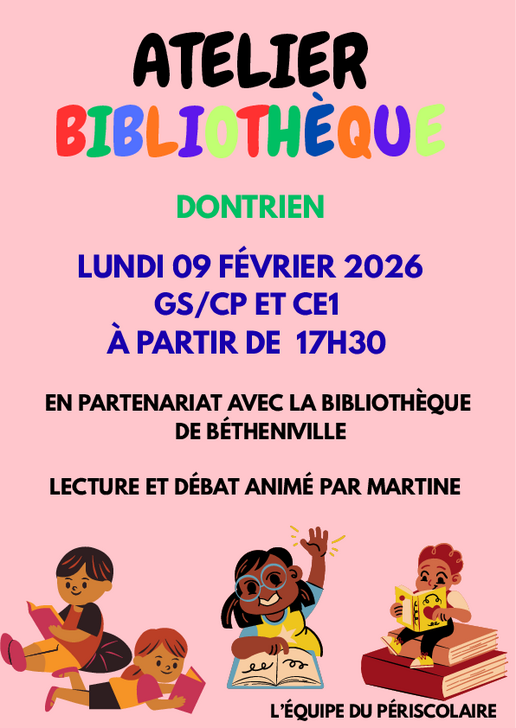 Le jeudi 4 décembre et le lundi 8 décembre 2025, ateliers lecture sur le périscolaire de la maternelle de Pontfaverger et sur Dontrien.