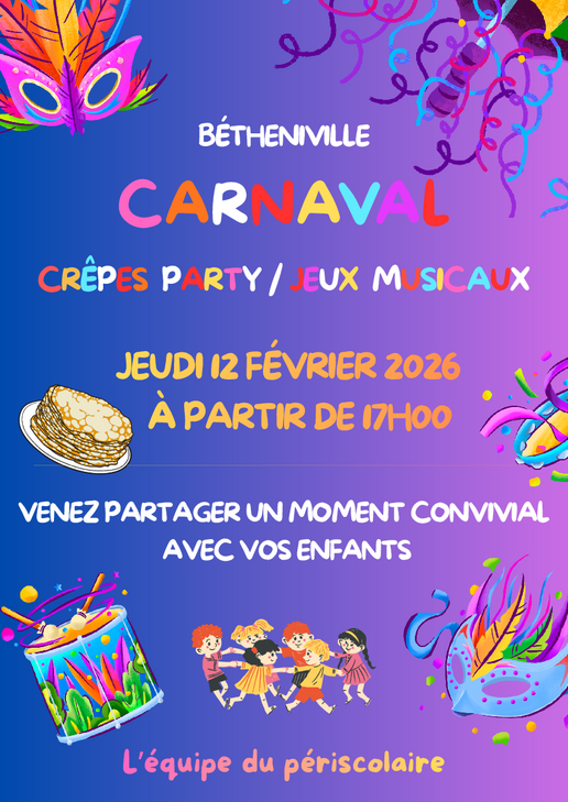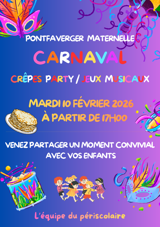 Les enfants ont choisi la destination de leur rêve pour fêter le carnaval le mardi 10 et le jeudi 12 février 2026, à cette occasion Crêpes-Party sur les périscolaires.